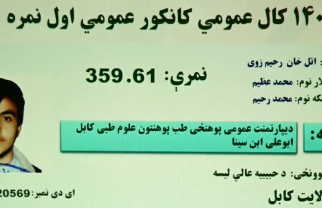 و شفیع‌الله نظامی ولد احمد جاوید از ولایت فراه با کسب ۳۵۷.۲۵ سوم نمره عمومی کانکور اعلام شد.