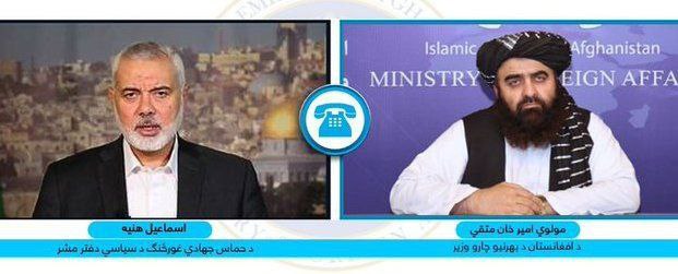 وزارت خارجه اعلام کرده که او این موضوع را در یک تماس تلفنی با اسماعیل هنیه رییس دفتر سیاسی حماس، بیان کرده است. در این تماس تلفنی، درباره تحولات اخیر سیاسی و جهادی در غزه و مسائل منطقهای گفتگو شده است.آقای متقی در این گفتوگو بار دیگر بر پشتیبانی امارت اسلامی از مردم فلسطین تاکید کرده است.