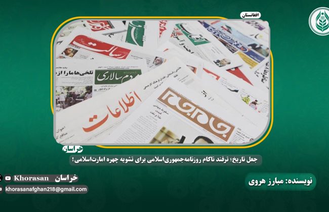 اما متاسفانه، مسئولین روزنامه جمهوری اسلامی در این اواخر بارها با جعل و تزویر در پی تشویه چهره امارت اسلامی بوده و کلماتی آکنده از حقد و کینه شخصی را به رشته تحریر در میآورند و با نشر چنین شایعات دروغینی بیش از پیش حیثیت و اعتبار این روزنامه را در چشم ملت خود و دیگر جهانیان از ببن میبرند.