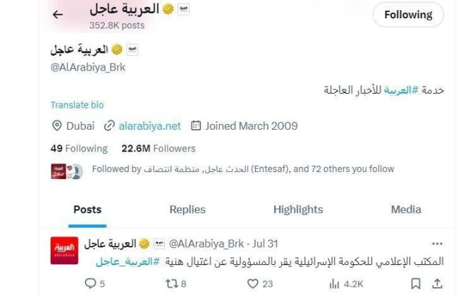 ‏خبر العربیه: دفتر رسانه‌ی کابینه اسراییل مسئولیت ترور اسماعیل هنیه را پذیرفت.