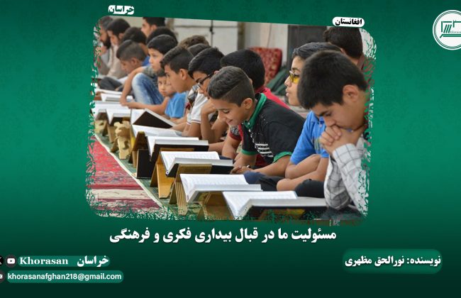 تربیت فکری و بیداری فرهنگی باعث ایجاد حس حاکمیت و قدرت در مسلمانان میشود و آنها را به احیای مجدد قوت گذشتۀ شان تشویق مینماید، بنابراین وظیفه همگان است که در برنامههای درسی و غیردرسی در زمینه آموزش فکری جوانان، به طور رسمی و غیر رسمی تلاش کنند و جوانان و نوجوانان ما را با زیورات عقیدوی و ارزشهای عملی زیبا نمایند.