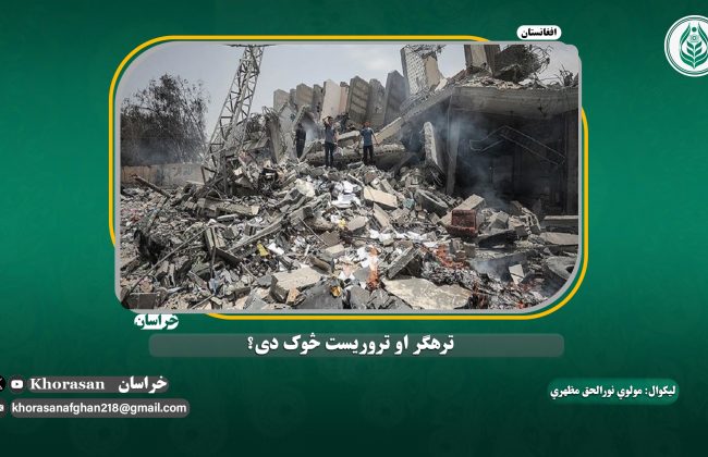 راځئ چې د تاريخ پاڼي وګورو او د خپل عقل څخه په استفاده دا معلومه کړو چې تروريست څوک دی؟ په خاصه توګه هغو کسانو ته وايم چي د تعصب له کبله يا د کفري نړۍ څخه په ړوند تقليد مسلمانانو ته او يا هم هغو کسانو ته چې د خپلو هيوادونو څخه دفاع کوي تروريست او ترهګر وايي.