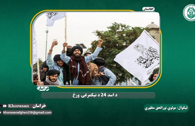 د اسد24 د مؤمنانو د بريا او کفارو د ماتي ورځ ده، په دې ورځ د اهل ايمان د ايماني جذبې د بريا څرک د آسيا په لوړو څوکو کې و پړکېدی او د اهل باطل د طغيان او سرکښۍ متمرد سر را ټيټ او د غرور دبدبه يې په نړۍ کي نسکوره شوه، په دې ورځ کې ايمان د کفر څخه او خپلواکۍ د اشغال څخه د مبارزې ميدان وګټی، په دې ورځ کې د ملحدينو هغه خوبونه په اوبو لاهو شوه چې د افغانستان په اړه به يې ليدل او غوښتل يې افغانستان د دیموکراسۍ ځالګې جوړه کړي او د دې پر عکس د هغو مؤمنانو د هيلو غوټۍ ګل شوې چې د لسيزو را پدې خوا يې په افغانستان کې د اسلامي نظام د حاکميت لپاره مبارزه کول، په دې ورځ کې د مرحوم اميرالمؤمنين ملا محمد عمر مجاهد رحمه الله هغه وړاندوينه په واقعيت بدله شوه چې د امريکايي اشغال په پيل کې يې کړېوه او ويل يې: يوه ورځ به آمريکا د ليست د سر څخه و پای ته را شوه کيږي.