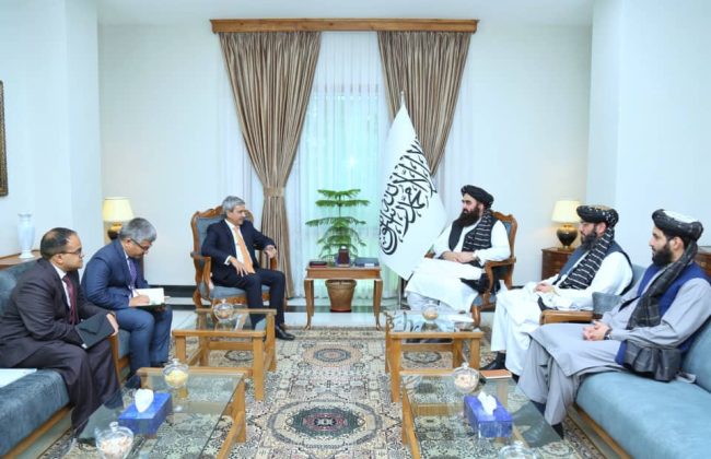 د ا.ا.ا. د بهرنیو چارو وزیر مولوي امیر خان متقي سره د هند جمهوریت ځانګړي استازي ښاغلي جي پي سنګ وکتل.