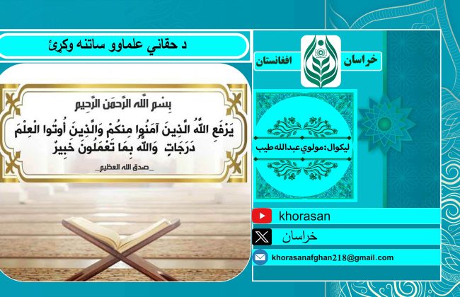 علماء هغه کسان دي چيې د انبیاوو وارثان دي، د انبیاوو میراث چي علم دئ هغه علماوو ته پاته دي، علماء د انبیاوو پر مصلي ځای ناستي او د هغوی وارثین او د هغوی څخه ورپاته میراث د دوی مسؤلیت دی، علماء د ټولني رهبران او مشران دي، علماء د هرې ټولني، او هر نظام په وړاندي خورا لوړ ارزښت او رول لري.