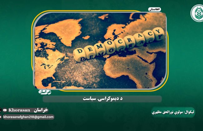 د ديموکراسۍ په نظام کې پر يوه دسترخان هم شراب څیښل کيږي او هم د قرآن تلاوت کيږي، يو سړی به نيمه ورځ د اسلام پر خلاف کار کوي او نيمه ورځ به بيا په مسجد کې تېروي، ميرمن به يې د شپې د ده سره وي خو د ورځي به بيا نور خلک خوندونه ورباندي اخلي.