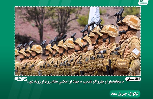 د اشغال پر وړاندې جهاد كې ياد مسير په ډېره ښه توگه تعقيب او رالنډ كړل شو او د هغه جهاد شهكارانو لا تراوسه اسلامي نظام ته هم پر خپل تقدس او سپېڅلتيا روح او سا ور كړې، ځكه نو أميرالمؤمنين څه په خوشې او چټي وټي له دوی خوښي نه ښيي، نه يې ستايي او نه يې د كومې بې پرواهۍ له مخې د داسې مطلق اطاعت او درنښت لارښوونه كوي، د هغه خوښي، ستاينه او د اطاعت او درنښت لارښوونه ډېره درنه، ارزښتمنه، له لوړې بيې برخمنه او ژوره ريښه لري. نو داسې هم نشي كېدای چې نوموړي دې دغه دروندوالی، ارزښت او بيه بې ځايه او هسې چټي وټي ټاكلې او پرې كړې وي، بلكې دا مانا چې پر كوم مسير، د كومو وينو او قربانيو په ور كولو او د كومو ارمانونو په تعقيب كې چې هغوی اسلامي امارت تر دې ځايه رارسولی دی؛ ډېر سپېڅلي او له تقدس څخه برخمن و چې دوی اوس هم ورته ژمن او همغه سپېڅلتيا او تقدس يې خوندي ساتلی دی، واك-ځواك وركې كوم تغير نه دی راوستی، هماغه تقدس چې د جهاد روح يې پرې ساته؛ اسلامي نظام هم پرې ژوندی ساتي، له أمله يې هم ترې خوښ او د ستاينې وړ او هم د اطاعت او درنښت وړ دي. د مجاهدينو او چارواكيو تقدس او سپېڅلتيا چې د جهاد او اسلامي نظام روح او ژوند دی؛ د پنځېدنې او له خپل دغه حيثيت سره سم ځای نيولو لپاره يې د امير المؤمنين دغه لارښوونې او سپارښتنې د هغو له غوښتنو سره سم پر ځای كول مهم دي او پر همدې موخه هغه او ځيني دغه مشران هم د دغې سپېڅلتيا او تقدس د پنځېدو او پر مټ يې د هماغه مسير په ښه ډول تعقيبولو لپاره ځان ته د كشرانو پر را نږدې كولو ټينگار لري.