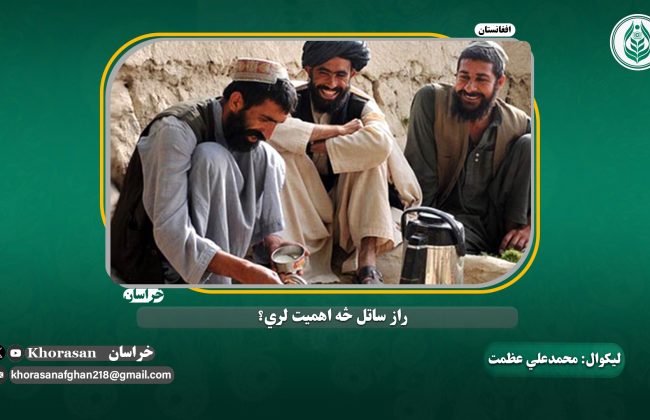 ښه، راز ساتل خو واجب شو، نو راز افشاء کول او څرګندول څنګه دي؟ راز ښکاره کول حرام دي، باید افشاء نه شي، کوم راز دومره لازم دی، د فرد که دولت؟ د دواړو ساتل مهم دي. د فرد راز چې افشاء شي نو یوازې د هغه په زیان او تاوان به وي، ولې که د داسې شخص  راز افشاء شي چې د دولت لوړ پوړی چاروکی وي، نو ټول دولت ته به زیان واوړي.