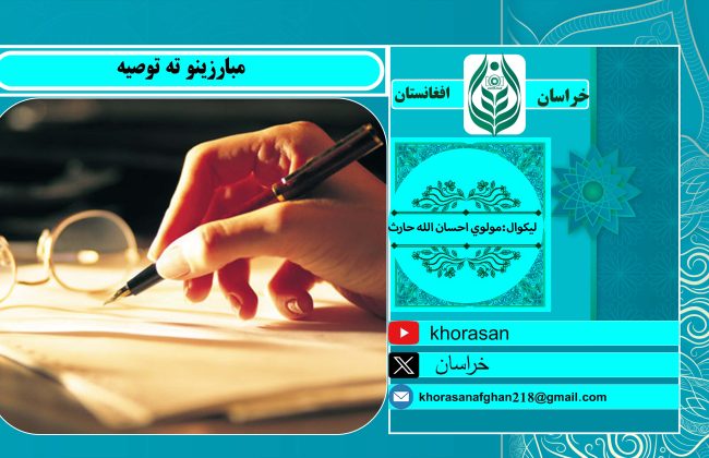 نو راځــئ! خپلې مبارزې ته دوام ورکـــړو، هغه رسنیو چې زما او ستا د ځوانانو فکرونه ګډوډ کړي، په وړاندي یې په پوره اخلاص اومتانت کلکه مبارزه وکړو، قلم په لاس کې واخلو او ملت پوه کــړو چې هېڅکله غربي رسنۍ زموږ اوستاسو د دین، هیواد او نظام په ګټه نشرات نه کوي.