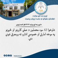 شاوخوا ۱۲ سوه محصلین د عملي کارونو او څېړنو په موخه امارتي او خصوصي ادارو ته ورمعرفي شوي دي....