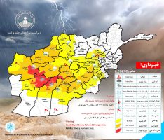 بر بنیاد خبرنامه این وزارت، امروز (یکشنبه، ۲۱ دلو) هرات، فراه، نیمروز، هلمند، قندهار، زابل، ارزگان، دایکندی، غور، بادغیس، فاریاب،...